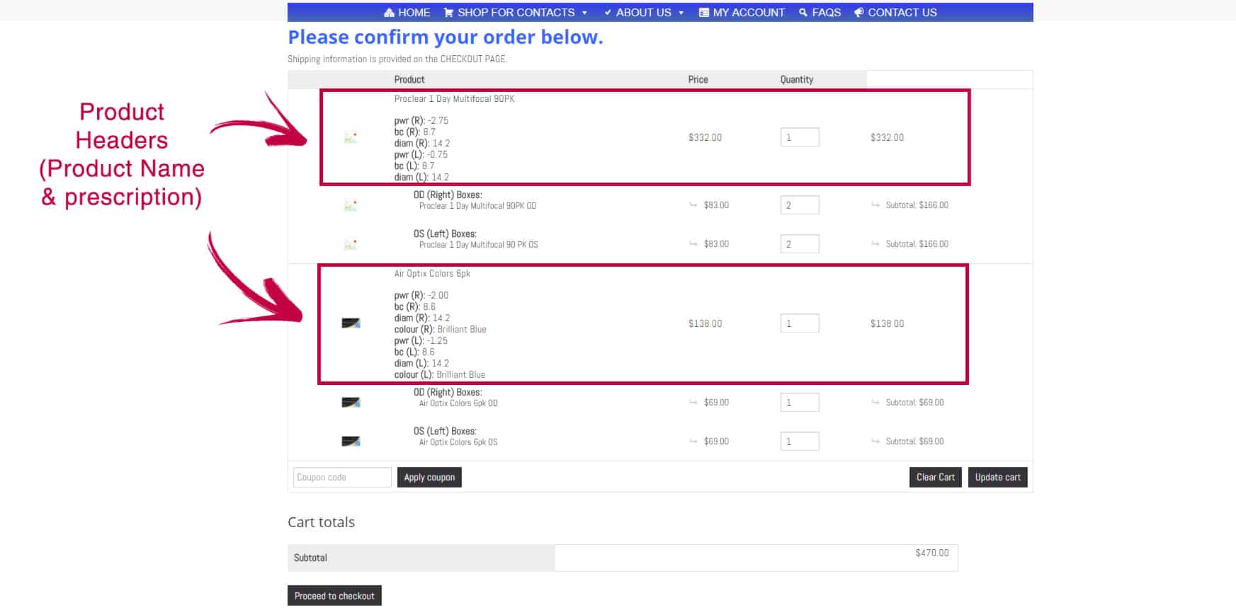 This shows you the number of boxes you ordered for each eye. This is a great time to make sure you ordered the correct quantity that you wanted.
